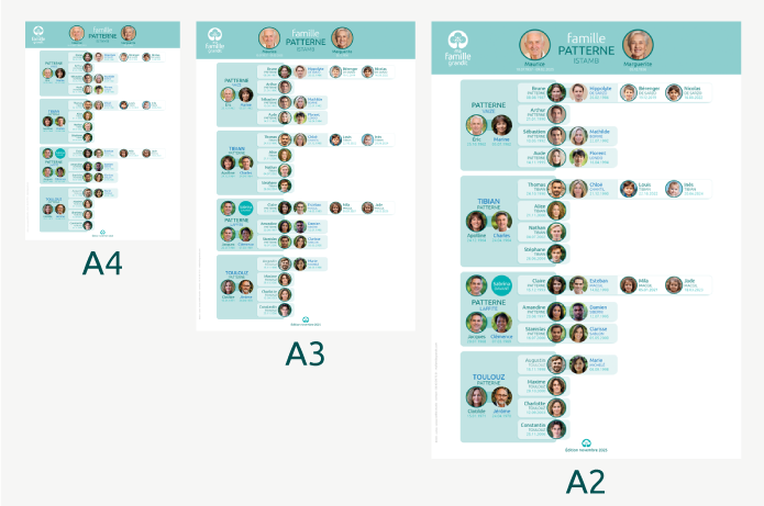Nos différents gabarits arbre famille et les prix annoncés tiennent compte de cette composition unique.